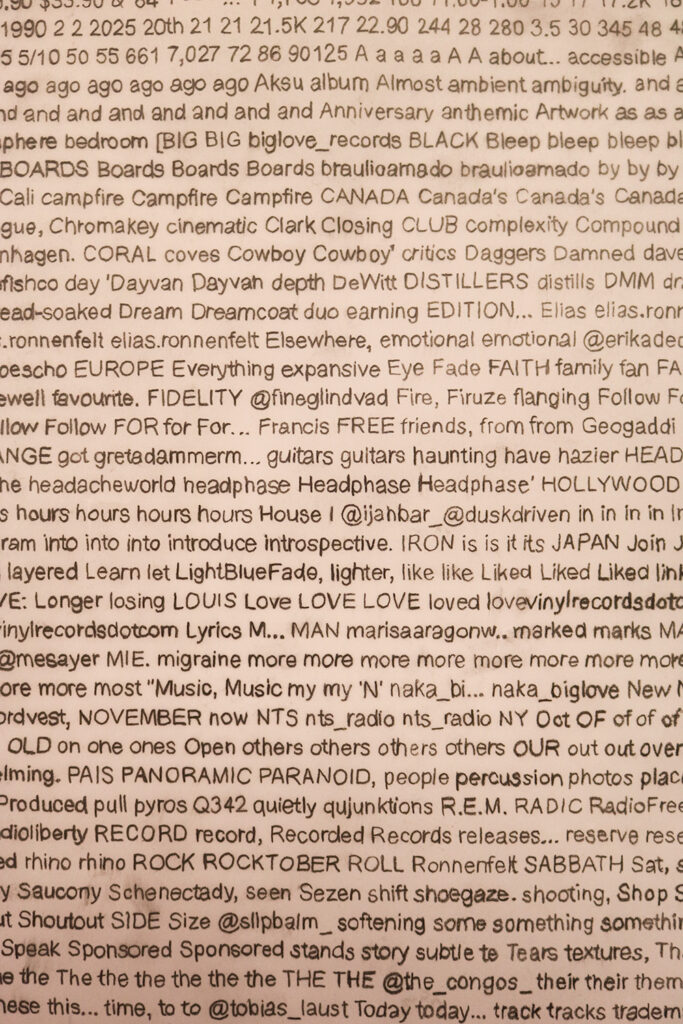 Drawing: Every legible word from a one minute scroll, sorted alphabetically and hand drawn