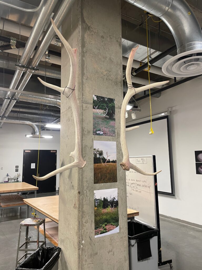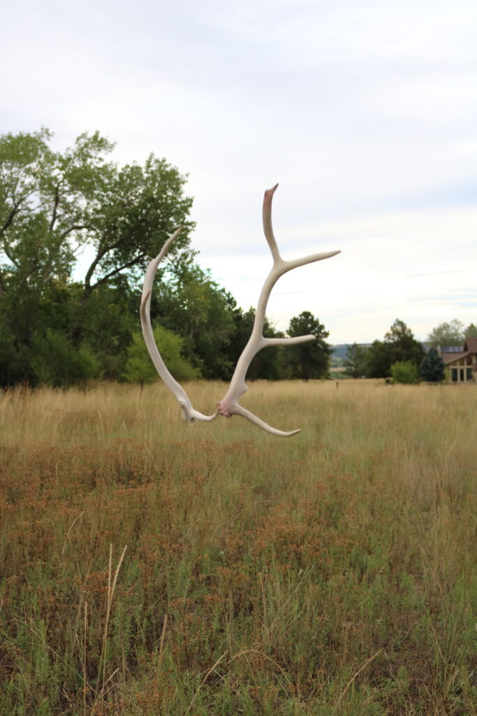 Elk antlers thrown and photographed airborne suggesting an absent body, taken at sites of tree stumps in my childhood neighborhood on Shanahan Ridge in Boulder, CO, chosen based on recency of cutting, proximity to my house, and significance in my memory of the neighborhood. Shanahan documents the gradual change to an environment that intersects naturally and artificially planted vegetation, urban and wildlife boundaries, and personal memory and growth as I’ve noticed a decline in deer and elk populations in my neighborhood while I outgrow it.